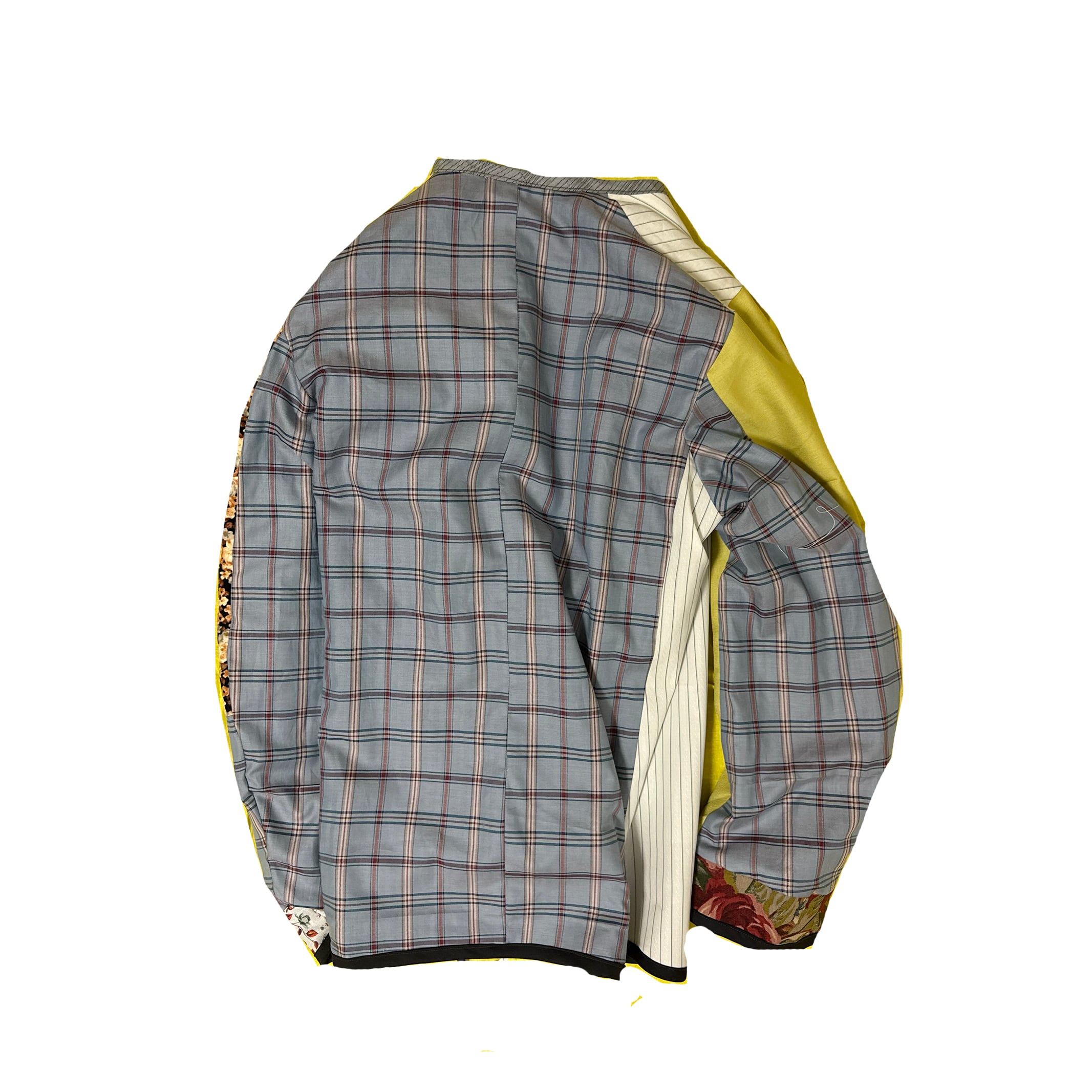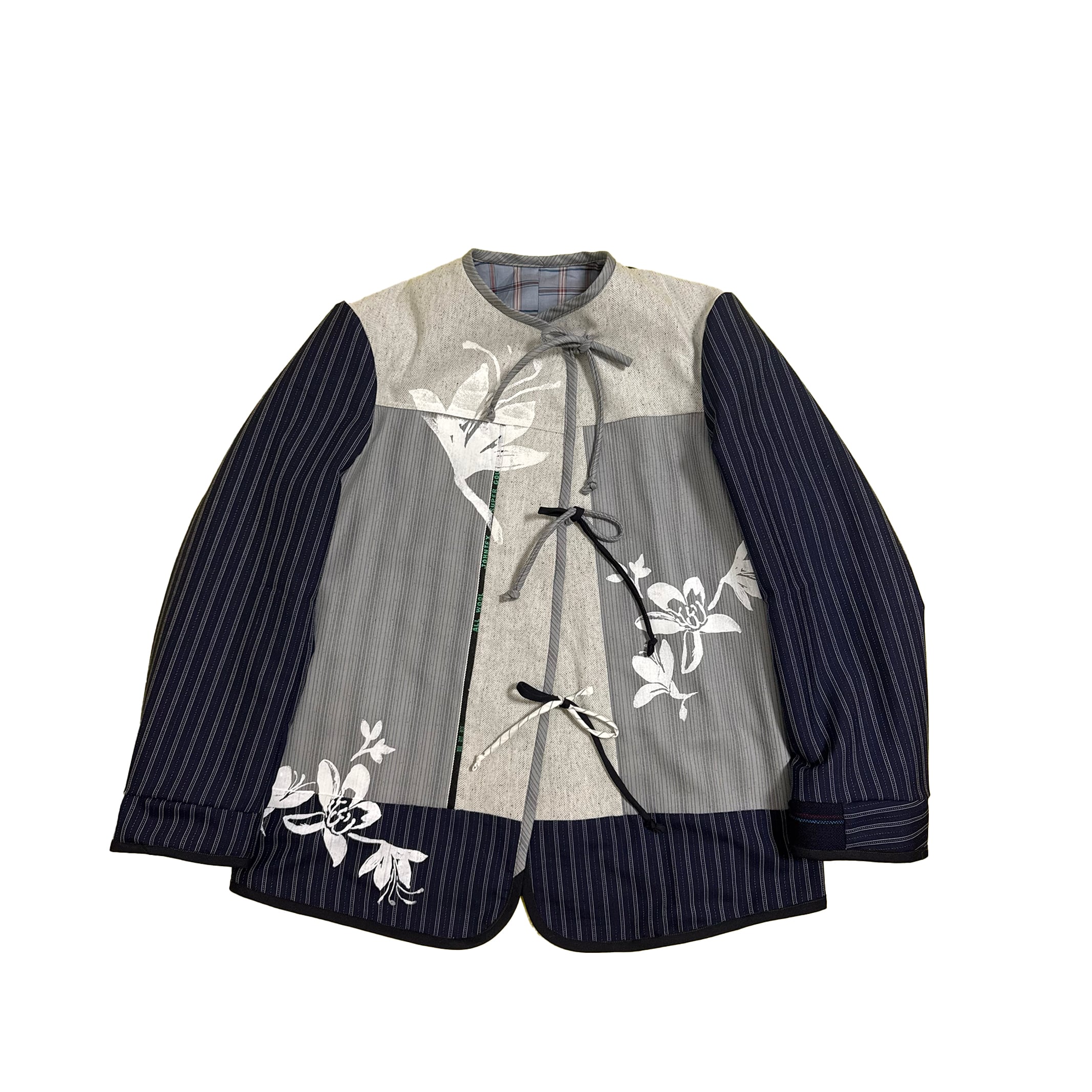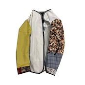 色々な中古の生地を組み合わせたリバーシブルジャケットです。上からオリジナルのシルクスクリーンプリントを施しました。